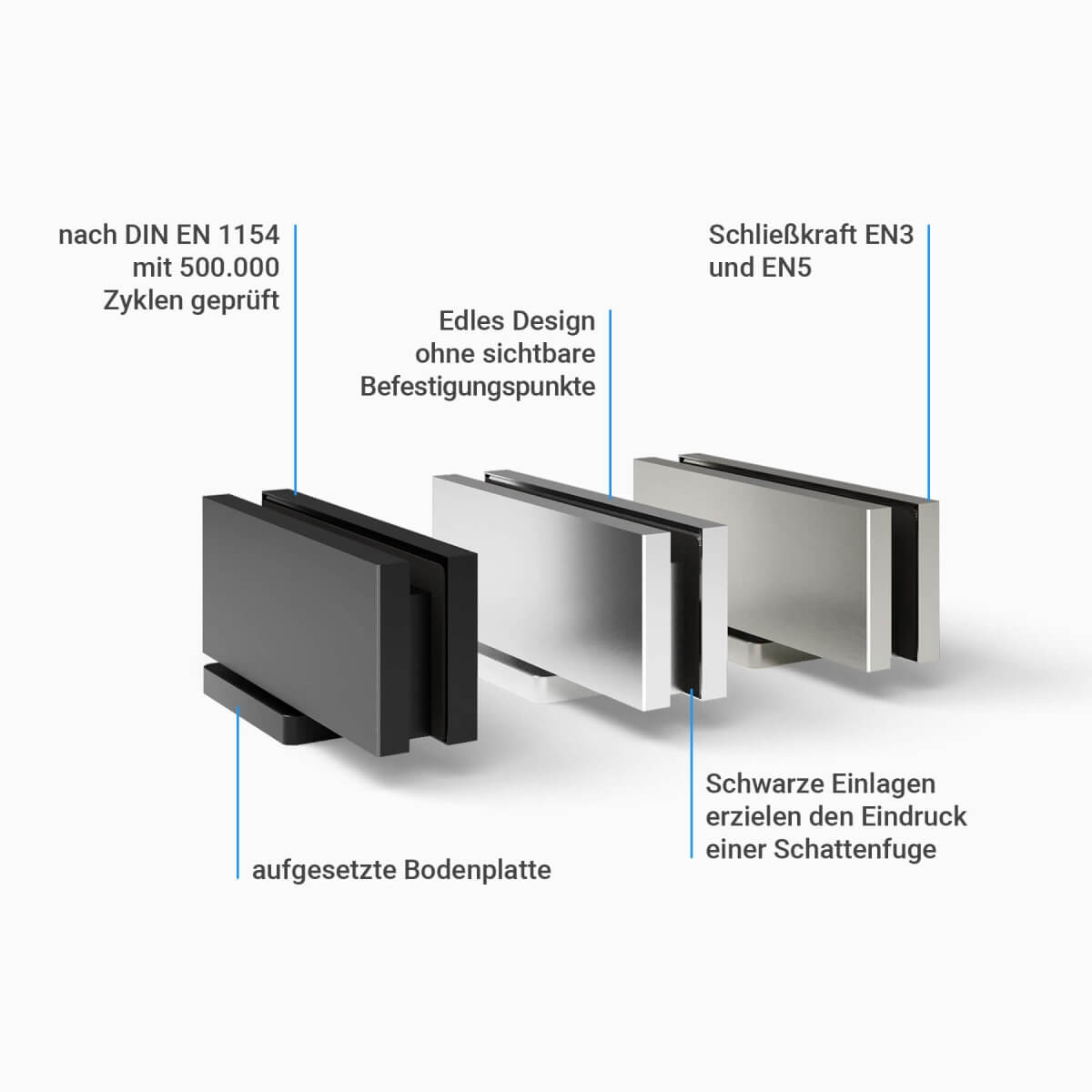 • Ideal zur Nachrüstung durch aufgesetzten Bodentürschließer